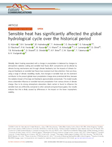 Sensible heat has significantly affected the global hydrological cycle over the historical period.