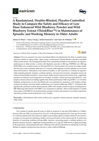 A randomized, double-blinded, placebo-controlled study to compare the safety and efficacy of low dose enhanced wild blueberry powder and wild blueberry extract (ThinkBlue™) in maintenance of episodic and working memory in older adults.