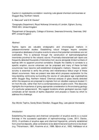 MacLeod, A. and Davies, S. M. (2016) Caution in cryptotephra correlation: resolving Lateglacial chemical controversies at Sluggan Bog, Northern Ireland. Journal of Quaternary Science, 31 (4). pp. 406-415. ISSN 0267-8179 doi: 10.1002/jqs.2858