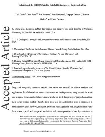 Dinku, T., Funk, C., Peterson, P., Maidment, R. ORCID: https://orcid.org/0000-0003-2054-3259, Tadesse, T., Gadain, H. and Ceccato, P.