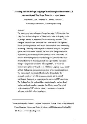 Teaching modern foreign languages in multilingual classrooms: an examination of Key Stage 2 teachers’ experiences.
