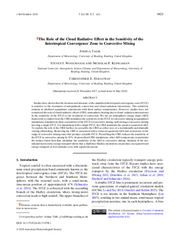 The role of the cloud radiative effect in the sensitivity of the Intertropical Convergence Zone to convective mixing.