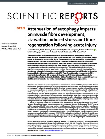 Attenuation of autophagy impacts on muscle fibre development, starvation induced stress and fibre regeneration following acute injury