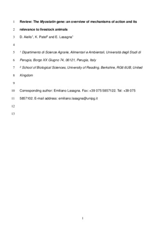Aiello, D., Patel, K. and Lasagna, E. (2018) The Myostatin gene: an overview of mechanisms of action and its relevance to livestock animals. Animal Genetics, 49 (6). pp. 505-519. ISSN 1365-2052 doi: 10.1111/age.12696