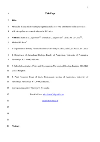 Molecular characterization and phylogenetic analysis of betasatellite molecules associated with okra yellow vein mosaic disease in Sri Lanka