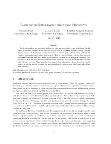Prediction markets are a popular platform for eliciting incentivised crowd predictions. In this paper, we examine variation in the information contained in prediction market prices by studying Intrade prices on U.S. elections around the release of opinion polls. We find that poll releases stimulate an immediate uptick in trading activity. However, much of this activity involves relatively inexperienced traders and, as a result, price efficiency declines in the immediate aftermath of a poll release. It is not until more experienced traders enter the market in the following hours that price efficiency recovers. More generally, this suggests that information releases do not necessarily improve prediction market forecasts, but may instead attract noise traders who temporarily reduce price efficiency.