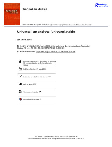 A unified set of questions arises in translation theory as it does in philosophy: how can one particularity be related to another? Can any general truth emerge from this relationship? And if so, in what particular language might this general truth be thought about and discussed? This article explores how various French thinkers have addressed these questions, from Alain Badiou’s recent account of philosophical French in terms of universalism, to Antoine Berman’s and Philippe Lacoue-Labarthe’s readings of an alternative approach to universalism provided by German thought. Where a key passage in Badiou’s text suggests that he has Friedrich Hölderlin in mind, this poet-translator provides an explicit model for the other two thinkers.