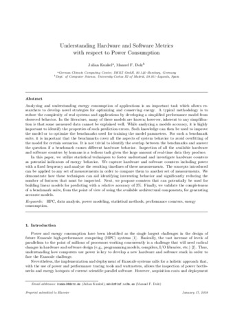 Kunkel, J. and Dolz, M. F. (2018) Understanding hardware and software metrics with respect to power consumption. Sustainable Computing: Informatics and Systems, 17. pp. 43-54. ISSN 2210-5379 doi: 10.1016/j.suscom.2017.10.016
