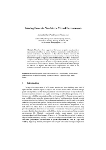 Muryy, A. and Glennerster, A. orcid id iconORCID: https://orcid.org/0000-0002-8674-2763 (2018) Pointing errors in non-metric virtual environments. Lecture Notes in Computer Science, 11034. pp. 43-57. ISSN 0302-9743 doi: 10.1007/978-3-319-96385-3_4