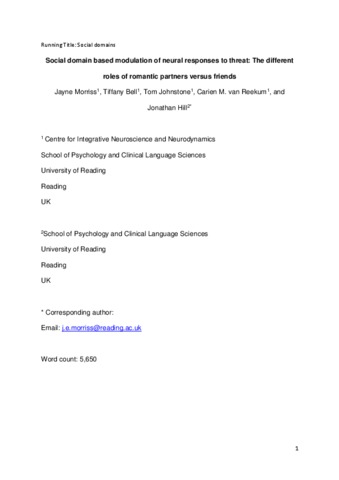 Social domain based modulation of neural responses to threat: the different roles of romantic partners versus friends.