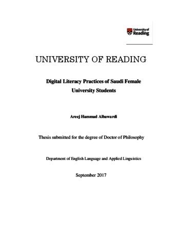 Albawardi, A. H. (2018) Digital literacy practices of Saudi Female university students. PhD thesis, University of Reading. doi: 10.48683/1926.00077848
