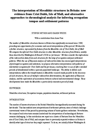 The interpretation of Mesolithic structures in Britain: new evidence from Criet Dubh, Isle of Mull, and alternative approaches to chronological analysis for inferring occupation tempos and settlement patterns.