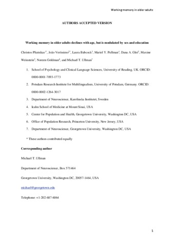 Working memory in older adults declines with age, but is modulated by sex and education.