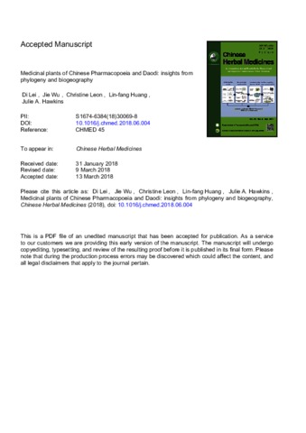 Medicinal plants of the Chinese Pharmacopoeia and Daodi: insights from phylogeny and biogeography.