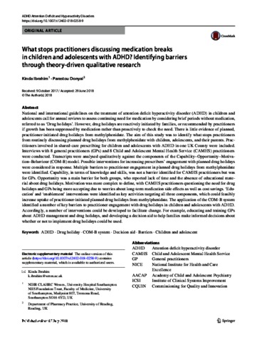 What stops practitioners discussing medication breaks in children and adolescents with ADHD? Identifying barriers through theory-driven qualitative research.