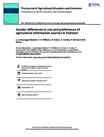 Gender differences in use and preferences of agricultural information sources in Pakistan.