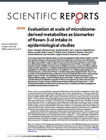 Evaluation at scale of microbiome-derived metabolites as biomarker of flavan-3-ol intake in epidemiological studies.