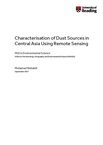 Nobakht, M. (2018) Characterisation of dust sources in Central Asia using remote sensing. PhD thesis, University of Reading.