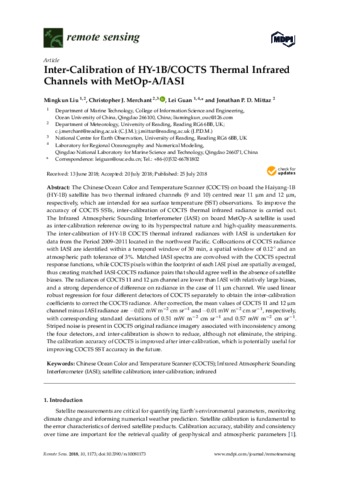 Inter-calibration of HY-1B/COCTS thermal infrared channels with MetOp-A/IASI.