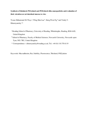 Synthesis of thiolated, PEGylated and POZylated silica nanoparticles and evaluation of their retention on rat intestinal mucosa in vitro.