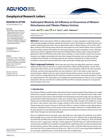Subtropical westerly jet influence on occurrence of western disturbances and Tibetan plateau vortices.