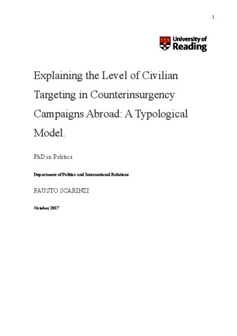 Scarinzi, F. (2017) Explaining the level of civilian targeting in counterinsurgency campaigns abroad: a typological model. PhD thesis, University of Reading.