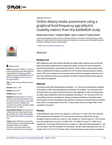 Online dietary intake assessment using a graphical food frequency app (eNutri): usability metrics from the EatWellUK study.
