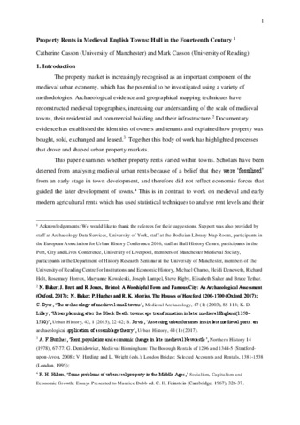 Casson, C. and Casson, M. orcid id iconORCID: https://orcid.org/0000-0003-2907-6538 (2019) Property rents in medieval English towns: Hull in the fourteenth century. Urban History, 46 (3). pp. 374-397. ISSN 1469-8706 doi: 10.1017/S096392681800041X