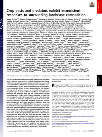 Karp, D. S., Chaplin-Kramer, R., Meehan, T. D., Martin, E. A., DeClerck, F., Grab, H., Gratton, C., Hunt, L., Larsen, A. E., Martínez-Salinas, A., O’Rourke, M. E., Rusch, A., Poveda, K., Jonsson, M., Rosenheim, J. A., Schellhorn, N. A., Tscharntke, T., Wratten, S. D., Zhang, W., Iverson, A. L., Adler, L. S., Albrecht, M., Alignier, A., Angelella, G. M., Zubair Anjum, M., Avelino, J., Batáry, P., Baveco, J. M., Bianchi, F. J. J. A., Birkhofer, K., Bohnenblust, E. W., Bommarco, R., Brewer, M. J., Caballero-López, B., Carrière, Y., Carvalheiro, L. G., Cayuela, L., Centrella, M., Ćetković, A., Henri, D. C., Chabert, A., Costamagna, A. C., De la Mora, A., de Kraker, J., Desneux, N., Diehl, E., Diekötter, T., Dormann, C. F., Eckberg, J. O., Entling, M. H., Fiedler, D., Franck, P., Frank van Veen, F. J., Frank, T., Gagic, V., Garratt, M.