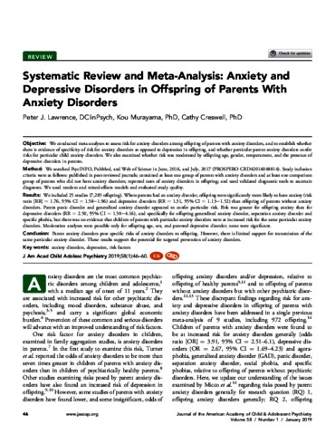 14. Micco JA, Henin A, Mick E, et al. Anxiety and depressive disorders in offspring at high risk for anxiety: a meta-analysis. Journal of anxiety disorders. 2009;23(8):1158-1164.