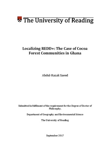Saeed, A.-R. (2018) Localizing REDD+: the case of cocoa forest communities in Ghana. PhD thesis, University of Reading.