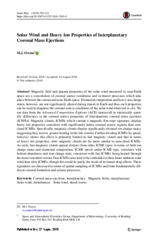 Solar wind and heavy ion properties of interplanetary coronal mass ejections.