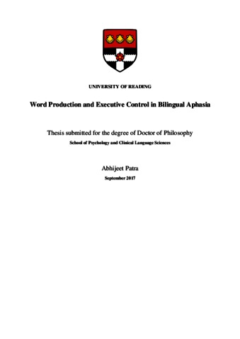 Patra, A. (2018) Word production and executive control in bilingual aphasia. PhD thesis, University of Reading.