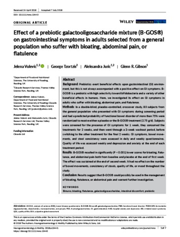 Effect of a prebiotic galactooligosaccharide mixture (B-GOS®) on gastrointestinal symptoms in adults selected from a general population who suffer with bloating, abdominal pain, or flatulence.