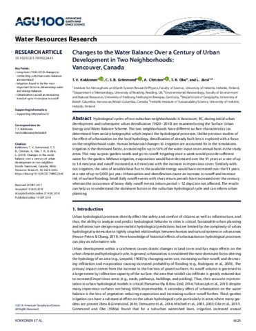 Changes to the water balance over a century of urban development in two neighborhoods: Vancouver, Canada.