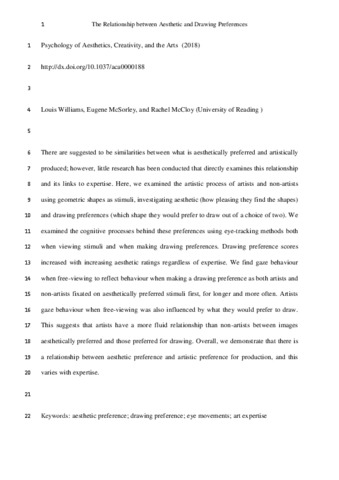 There are suggested to be similarities between what is aesthetically preferred and artistically produced; however, little research has been conducted that directly examines this relationship and its links to expertise. Here, we examined the artistic process of artists and nonartists using geometric shapes as stimuli, investigating aesthetic (how pleasing they find the shapes) and drawing preferences (which shape they would prefer to draw out of a choice of two). We examined the cognitive processes behind these preferences using eye-tracking methods both when viewing stimuli and when making drawing preferences. Drawing preference scores increased with increasing aesthetic ratings regardless of expertise. We find gaze behavior when free-viewing to reflect behavior when making a drawing preference as both artists and nonartists fixated on aesthetically preferred stimuli first, for longer and more often. Artists gaze behavior when free-viewing was also influenced by what they would prefer to draw. This suggests that artists have a more fluid relationship than nonartists between images aesthetically preferred and those preferred for drawing. Overall, we demonstrate that there is a relationship between aesthetic preference and artistic preference for production, and this varies with expertise