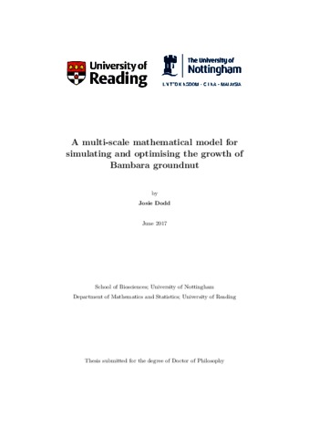 Dodd, J. (2018) A multi-scale mathematical model for simulating and optimising the growth of Bambara groundnut. PhD thesis, University of Reading. doi: 10.48683/1926.00078970