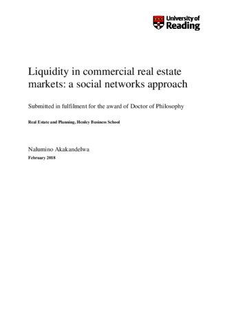 Akakandelwa, N. (2018) Liquidity in commercial real estate markets: a social networks approach. PhD thesis, University of Reading. doi: 10.48683/1926.00078973