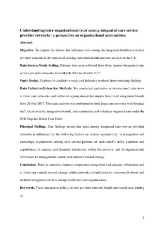 Understanding inter-organizational trust among integrated care service provider networks: a perspective on organizational asymmetries.