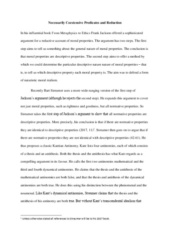 Streumer argues that all normative properties are descriptive properties. His first argument is based on the principle that necessarily coextensive predicates ascribe the same property (N), and the claim that there is a descriptive predicate that is necessarily coextensive with normative predicates. From this Streumer concludes that normative properties are identical with descriptive properties. I argue that, even if we accept (N), this conclusion does not follow. Normative properties could only be descriptive properties if there is some descriptive way in which all instances of normative properties are similar. But Streumer does not show that, and the prospects for doing so are, I believe, not good. His second argument rests on the premise that the nature of normative properties cannot depend on which first order normative theory is true. I argue that this premise is false, and that the argument for it does not sit comfortably with (N).