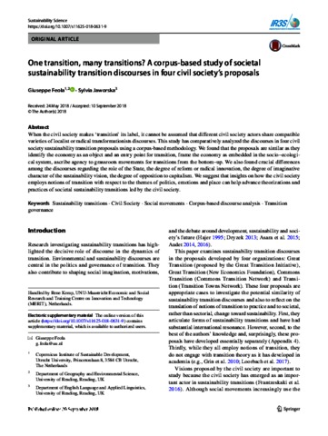 One transition, many transitions? A corpus-based study of societal sustainability transition discourses in four civil society’s proposals.