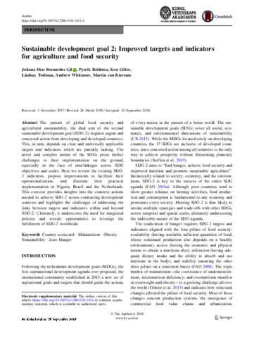 Gil, J. D. B., Reidsma, P., Giller, K., Todman, L. orcid id iconORCID: https://orcid.org/0000-0003-1232-294X, Whitmore, A. and van Ittersum, M. (2019) Sustainable development goal 2: improved targets and indicators for agriculture and food security. Ambio, 48 (7). pp. 685-698. ISSN 1654-7209 doi: 10.1007/s13280-018-1101-4