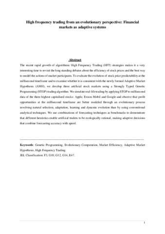 Manahov, V., Hudson, R. and Urquhart, A. orcid id iconORCID: https://orcid.org/0000-0001-8834-4243 (2019) High frequency trading from an evolutionary perspective: financial markets as adaptive systems. International Journal of Finance and Economics, 24 (2). pp. 943-962. ISSN 1099-1158 doi: 10.1002/ijfe.1700
