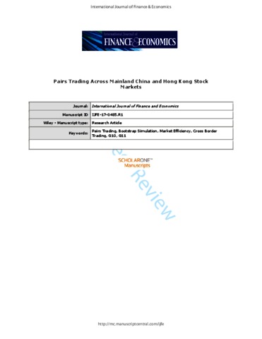 Zhang, H. and Urquhart, A. orcid id iconORCID: https://orcid.org/0000-0001-8834-4243 (2019) Pairs trading across mainland China and Hong Kong stock markets. International Journal of Finance & Economics, 24 (2). pp. 698-726. ISSN 1099-1158 doi: 10.1002/ijfe.1687