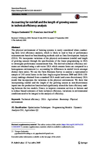 Gadanakis Y, Bennett R, Park J, Areal FJ (2015b) Improving productivity and water use efficiency: A case study of farms in England Agricultural Water Management 160:22-32 doi:https://doi.org/10.1016/j.agwat.2015.06.020