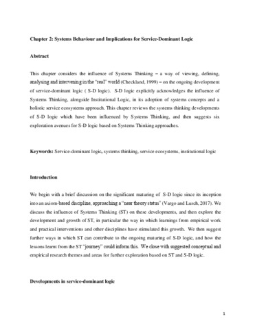 Systems behaviour and implications for service-dominant logic.