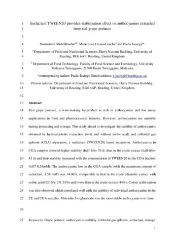 Surfactant TWEEN20 provides stabilisation effect on anthocyanins extracted from red grape pomace