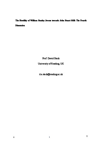 Stack, D. (2020) The hostility of William Stanley Jevons towards John Stuart Mill: the fourth dimension. History of Political Economy, 52 (1). pp. 77-99. ISSN 1527-1919 doi: 10.1215/00182702-8009523