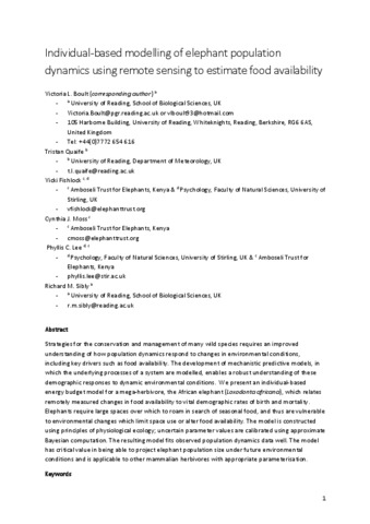 Boult, V. L., Quaife, T. ORCID: https://orcid.org/0000-0001-6896-4613, Fishlock, V., Moss, C. J., Lee, P. C. and Sibly, R. M.