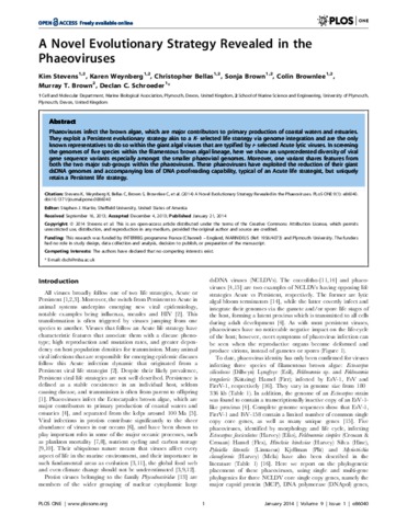Stevens, K., Weynberg, K., Bellas, C., Brown, S., Brownlee, C., Brown, M. T. and Schroeder, D. C. (2014) A novel evolutionary strategy revealed in the Phaeoviruses. PLoS ONE, 9 (1). e86040. ISSN 1932-6203 doi: 10.1371/journal.pone.0086040